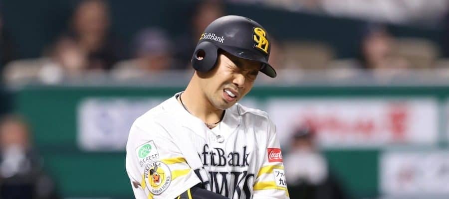 オリックス戦で死球を受けたソフトバンク・近藤健介【写真:栗木一考】