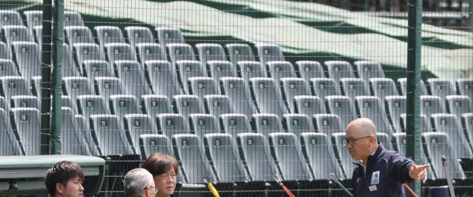 「阪神-中日」(19日、甲子園球場) 試合前練習中に三塁カメラマン席に甲子園球場長、球場担当者、球団幹部、阪神園芸のス…