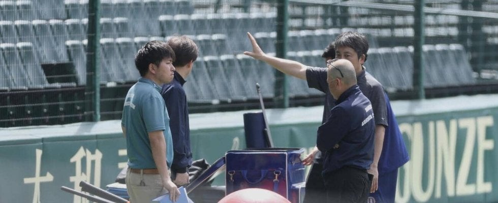 <阪神-中日>◇19日◇甲子園阪神の試合前練習中に球団関係者と球場職員が一塁側と三塁側カメラ席付近で話し込む姿が見られた…