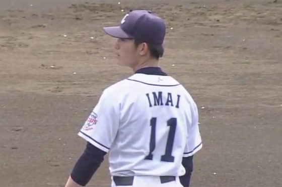 そんな今井の持ち味は、そのすらりとした体格からは想像もつかないような剛速球だ。全身を使って投じられる直球は、その伸びも抜群。常時140キロ台後半を計測し、最速152キロを誇る。この直球を軸に、スライダーとのコンビネーションで三振の山を築いていく。また、速球派の投手には珍しく確かな制球力を持っているのも魅力だ。
