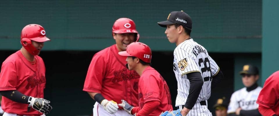 「ファーム・西地区、阪神3-19広島」(19日、日鉄鋼板SGLスタジアム) 守乱、投壊。19失点を喫したチームに阪神・…