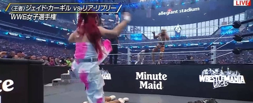 イヨ・スカイ、レッスルマニア“電撃参戦”でリアの窮地を救う! 介入での数的不利に駆け付け華麗な“ムーンサルト”で敵二人を一蹴 王座獲得をお膳立て