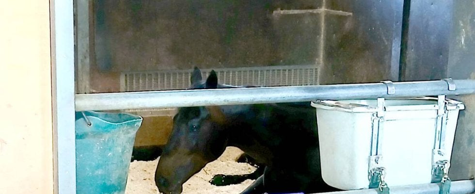 馬房で寝て過ごすロブチェン(カメラ・山下 優)