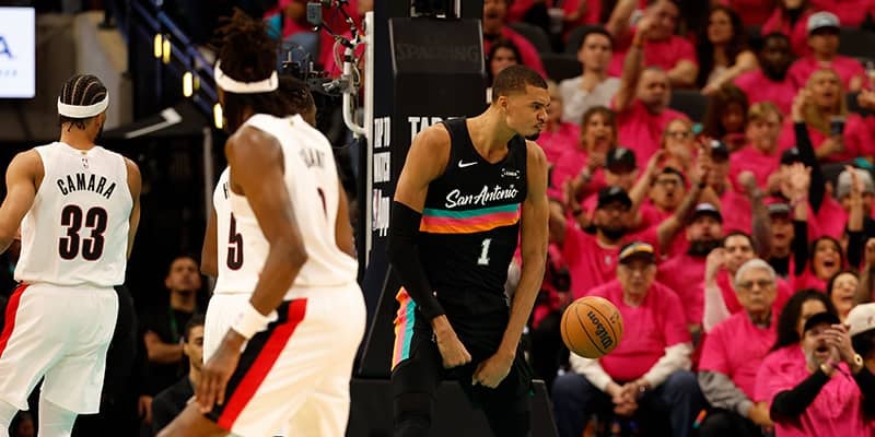 スパーズがブレイザーズに先勝…ウェンバンヤマはプレーオフデビュー戦で35得点の活躍 | バスケットボール