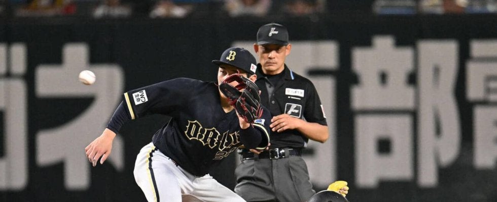 【写真】ソフトバンク対オリックス 5回裏ソフトバンク1死一塁、打者中村晃のとき一塁走者周東(下)は盗塁成功(2026年4月18日撮影)