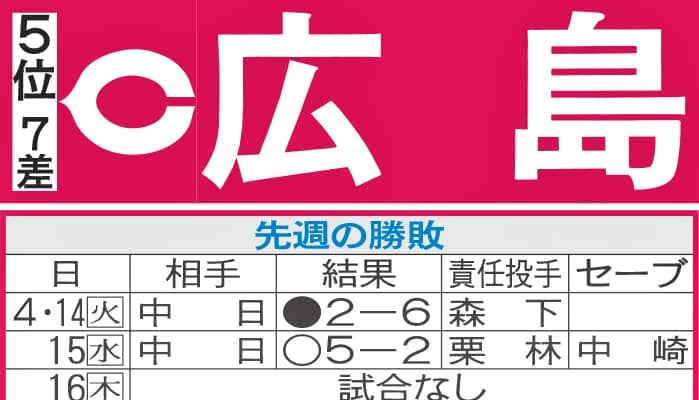 【写真】広島先週の勝敗と今週の予定