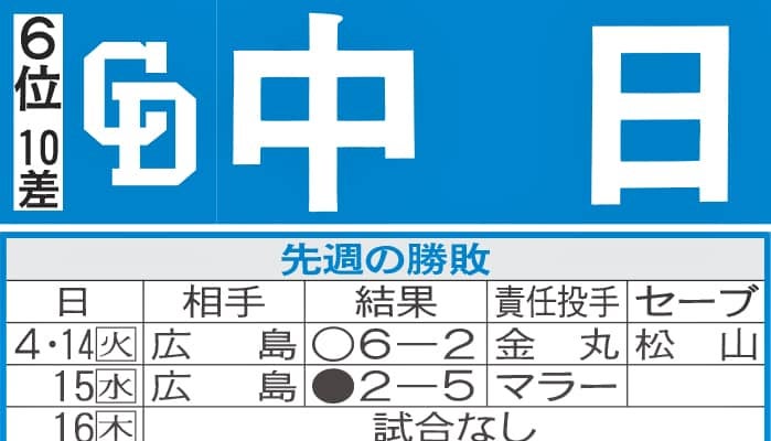 【写真】中日先週の勝敗と今週の予定