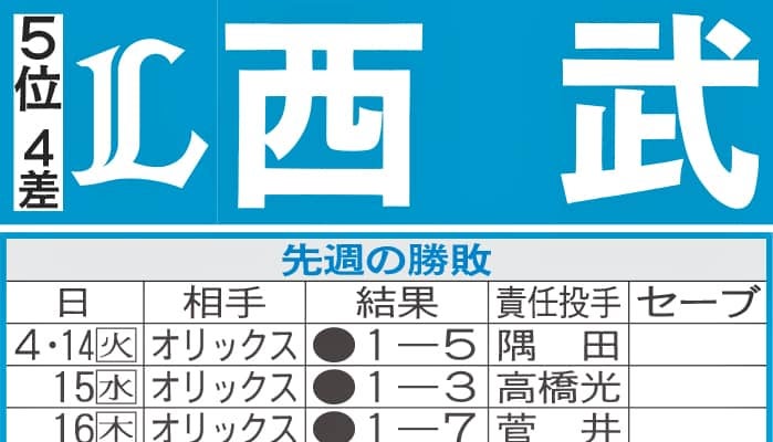 【写真】西武先週の勝敗と今週の予定