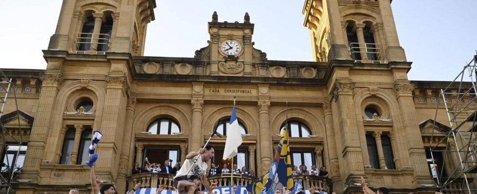 【写真】ファンとともに優勝祝賀会で喜び合うレアル・ソシエダード(ロイター)