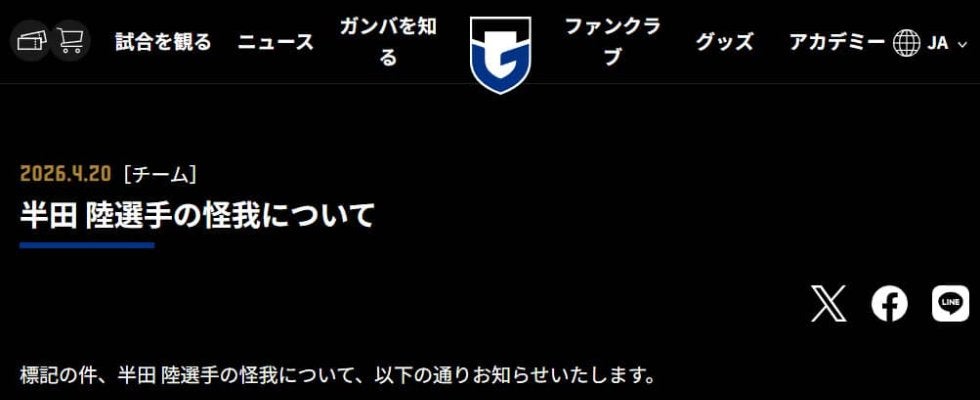 【G大阪】半田陸が左ひざ前十字靱帯損傷、外側半月板損傷で長期離脱 11日C大阪戦で負傷 | サッカー