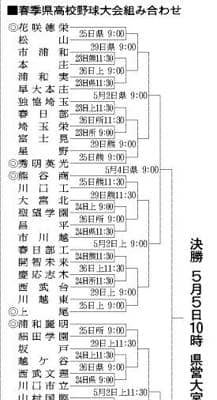 春季埼玉県高校野球大会(県高校野球連盟主催、朝日新聞社後援)の組み合わせが20日、決まった。4地区の予選を勝ち上がった…