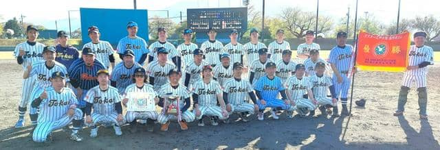優勝した東海大諏訪の選手たち=長野県高校野球OB・OG連盟提供