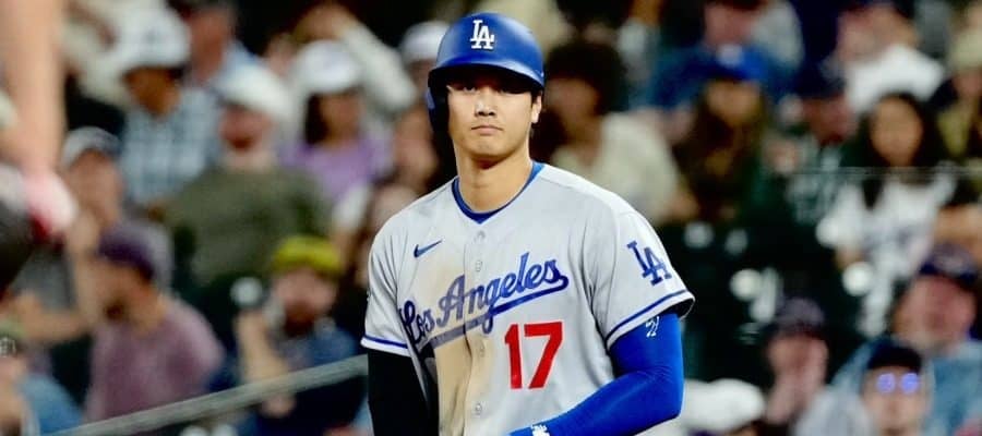 申告敬遠で出塁したドジャース・大谷翔平【写真:黒澤崇】