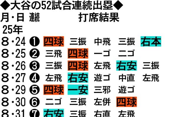 ドジャース大谷翔平の52試合連続出塁/一覧 | 野球