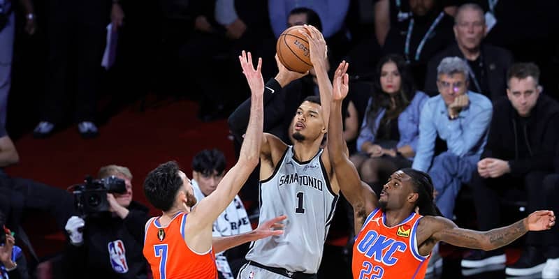 ここ6年で最高の視聴者数を記録した2025年12月14日に配信のスパーズとサンダーの一戦 [写真]=Getty Images