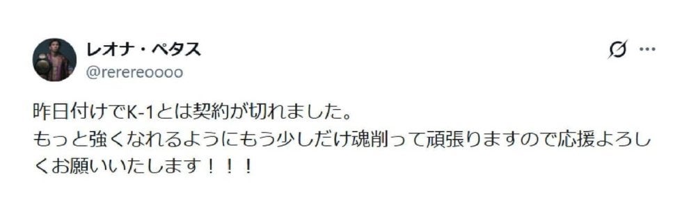 【写真】レオナ・ペタスはXでK-1との契約が終了したことを発表した