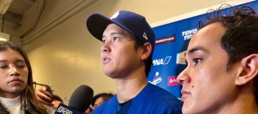 試合後、取材に応じたドジャース・大谷翔平【写真:小谷真弥】