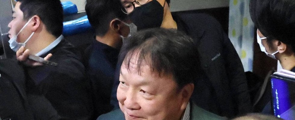練習視察後、報道陣に囲まれる大橋秀行会長 (カメラ・堺 恒志)