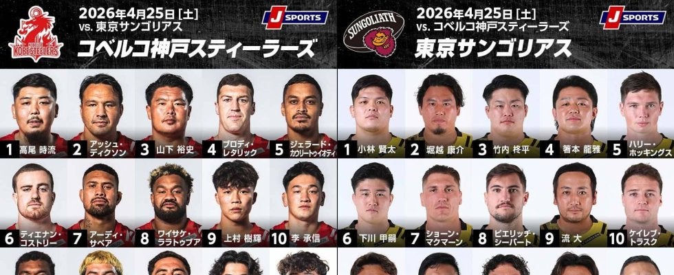 リーグ戦終盤!首位を狙う2位「コベルコ神戸スティーラーズ」×連敗脱出を期す5位「東京サントリーサンゴリアス」!ジャパンラグビーリーグワン2025-2026D1第16節 | J SPORTS