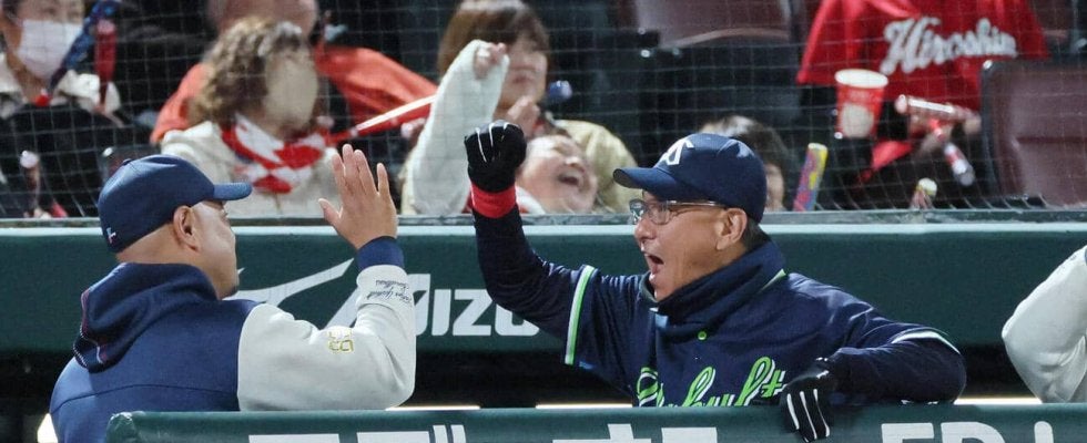 【写真】広島対ヤクルト 勝利の瞬間、大喜びのヤクルト池山隆寛監督(撮影・加藤孝規)