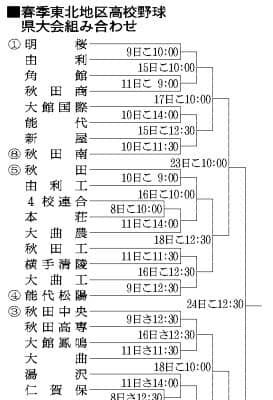 第74回春季東北地区高校野球秋田県大会の組み合わせ抽選会が23日、秋田市内であり、出場35チームの対戦相手が決まった。…