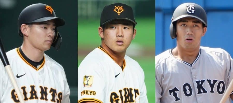 巨人・萩尾匡也、石塚裕惺、三塚琉生(左から)【写真:矢口亨、小林靖、町田利衣】