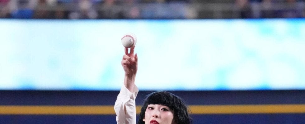 【写真】中日対ヤクルト セレモニアルピッチを行うアバンギャルディのsono(撮影・森本幸一)