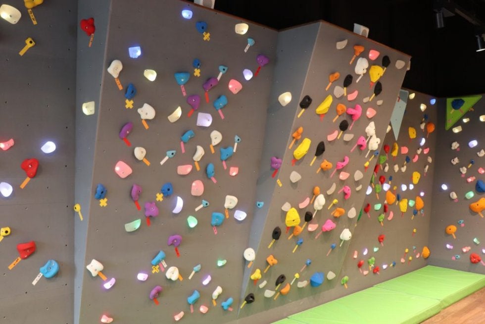 「みちびクライミング」では、登録されたルートのホールドが順番に明るく点灯。