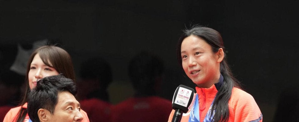 【写真】「ミラノ・コルティナ2026冬季オリンピック・パラリンピック応援感謝パレード」 インタビューに答える高木美帆さん (撮影・小島史椰)