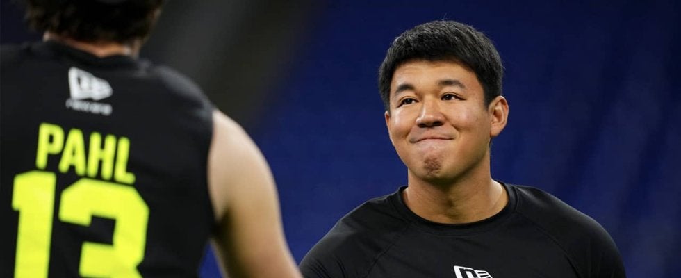 【写真】2月のNFLコンバインに参加した際の松澤寛政(NFL Football Operations公式Xから)