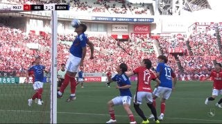 「何してんの…」Jリーグの衝撃“顔面オウンゴール”にSNS騒然!「どうしてそっちにクリアしたの」横浜FMキニョーネスが唖然