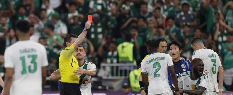 後半、アルアハリ選手にレッドカードが出される(ロイター)