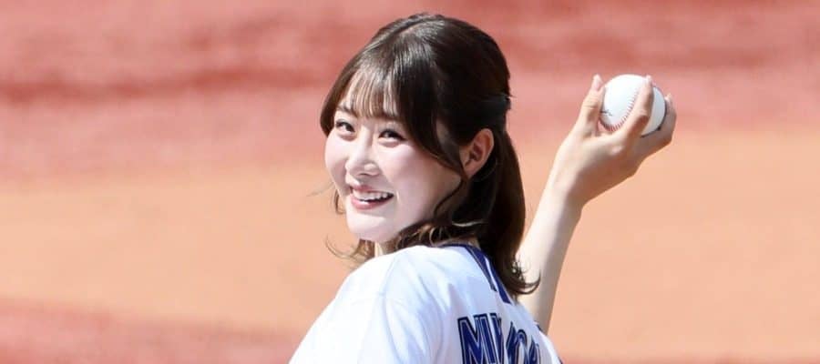 【動画】ミニスカ女優が“透け透け衣装”で始球式 スラり伸びる脚「ドラユニ似合う」