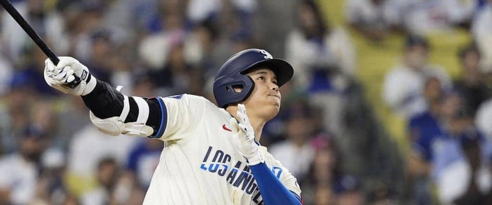 「ドジャース-カブス」(25日、ロサンゼルス) ドジャースの大谷翔平投手は初回先頭の第1打席で4試合14打席ぶりの安打…