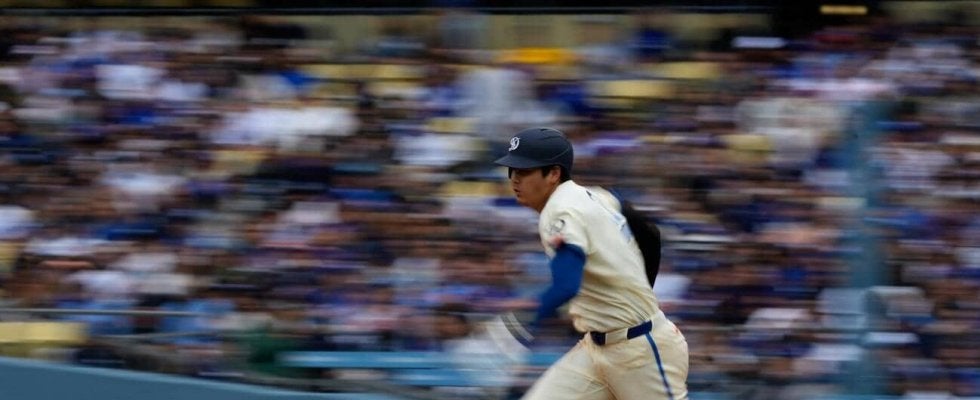 【写真】カブス戦の1回、二盗を試みるドジャース大谷翔平(AP)
