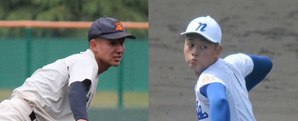 9回2死から救援した高知商・北添(左)と完投勝利の新田・築山