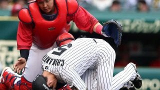 死球に受けてグラウンドに倒れ込む近本。試合後に左手首の骨折が判明した(C)産経新聞社 盤石の虎はどうなるのか。連覇を目指…