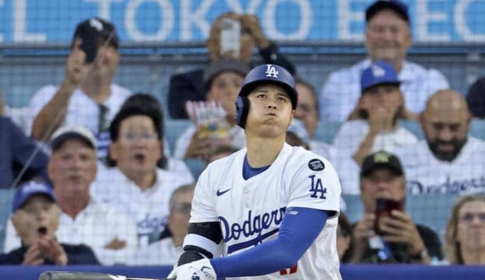 大谷翔平が3打席連続出塁 勝ち越し好機でストレートの四球→また鈴木誠也と爆笑やり取り ド軍は打者一巡で一挙6点のビッグイニング
