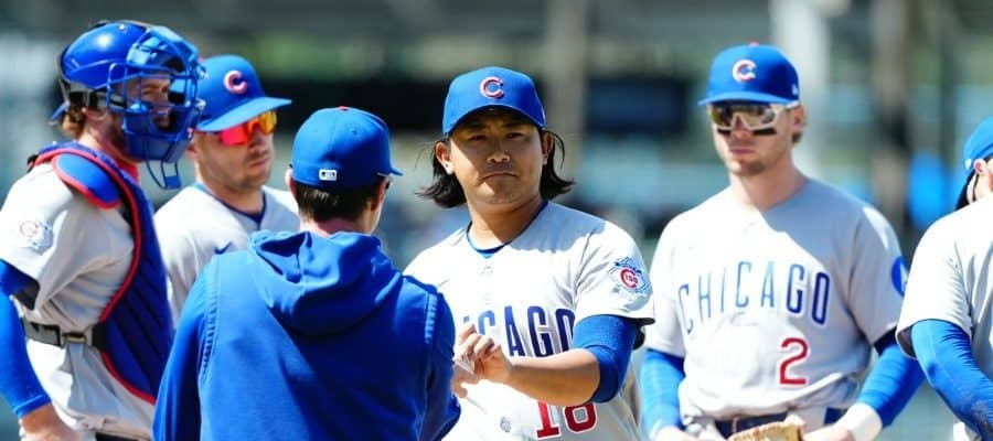 ドジャース戦に先発も敗戦投手となったカブス・今永昇太(中央)【写真:黒澤崇】