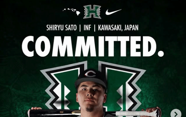 オリックスのルーキー佐藤龍月投手の兄、佐藤志龍がNCAAディビジョン1のハワイ大へ
