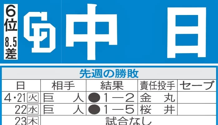 【写真】中日先週の勝敗と今週の予定