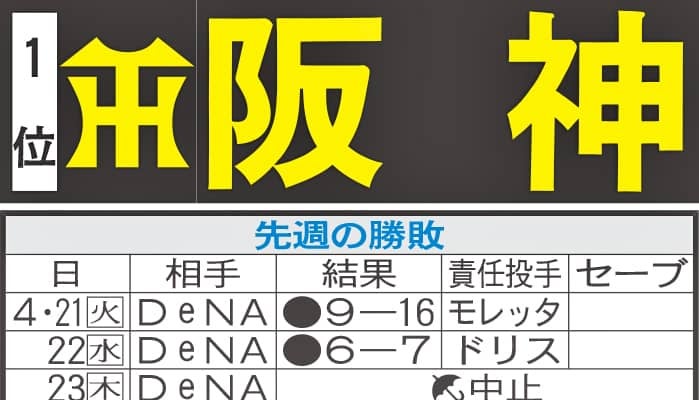 【写真】阪神先週の勝敗と今週の予定