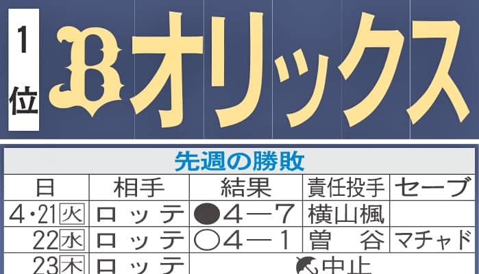 【写真】オリックス先週の勝敗と今週の予定