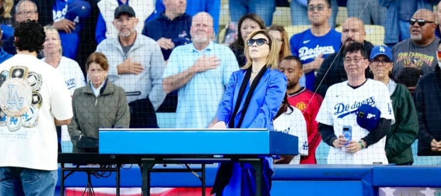 試合前、女性歌手とともに米国国歌を演奏【MLB】ドジャース ー マーリンズ(日本時間28日・ロサンゼルス) ロックバンド…