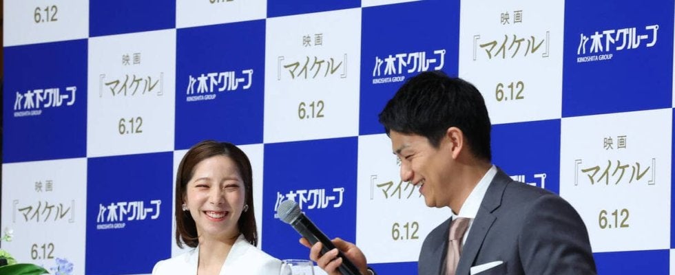 会見する三浦璃来、木原龍一組(カメラ・宮崎 亮太)