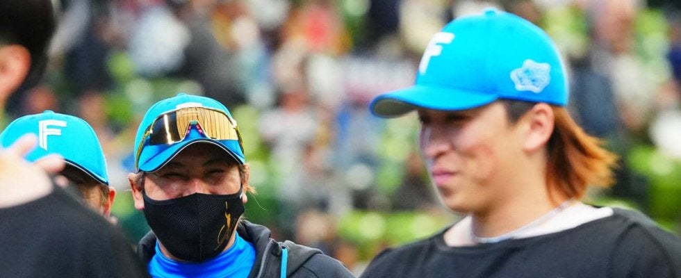 【写真】西武対日本ハム 西武に勝利した日本ハム新庄剛志監督(左)は細野晴希に笑顔で声をかける(撮影・垰建太)