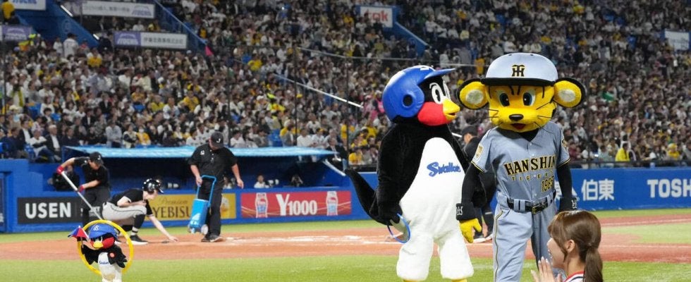 <ヤクルト-阪神>◇28日◇神宮阪神は今年初めての神宮遠征。チームとともに東上してきたトラッキーがヤクルトのつば九郎と久…