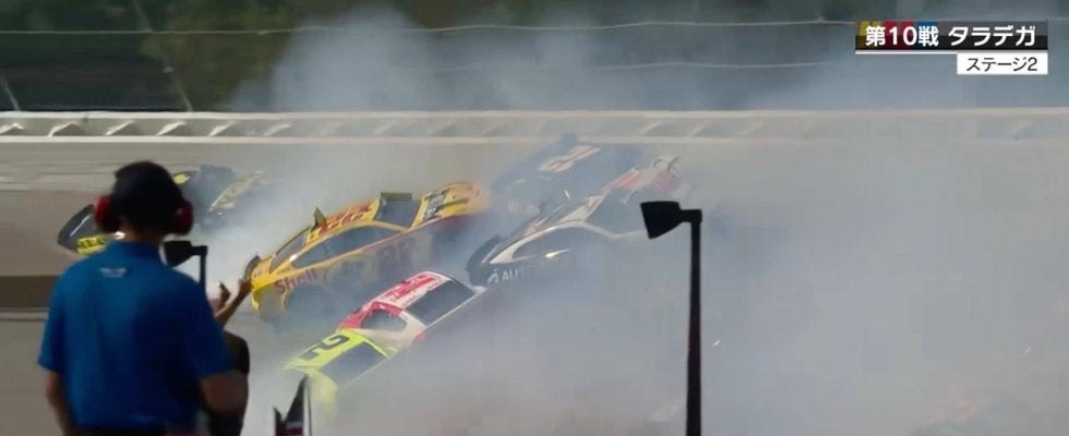 米レース史上最大級!26台絡む巨大クラッシュの一部始終 バックでピットへ…斜めに走る車も コース上が白煙に包まれる大惨事
