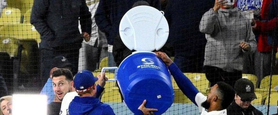 【動画】ドジャースの水かけ役は意外な選手に交代!? ワトソンさん 危機を瞬時に察知してバケツシャワー回避