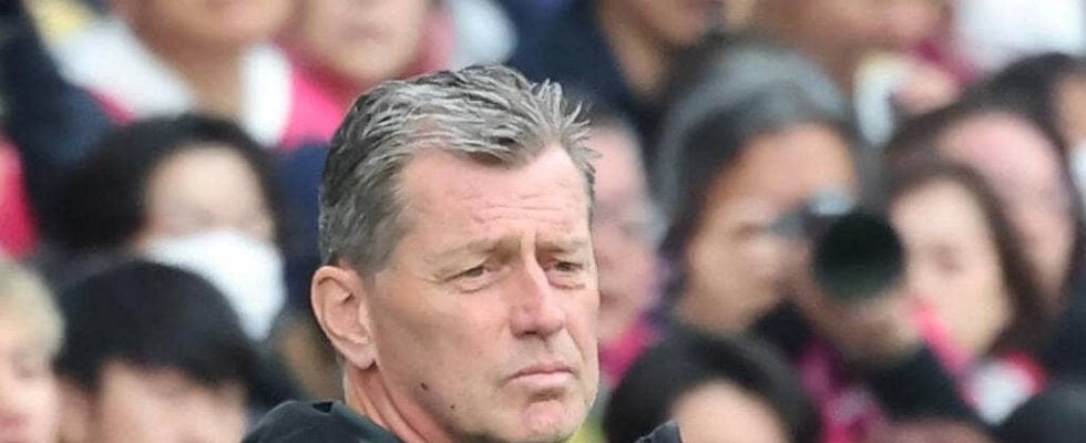 試合を見つめる神戸のミヒャエル・スキッベ監督(カメラ・馬場 秀則)
